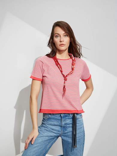 Maglia girocollo rigata a manica corta.