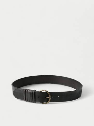 Cintura in pelle bovina lavata. Larghezza 4 cm. Vite posteriore per taglio manuale. Fibbia color oro antico.