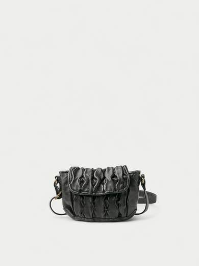 Borsa piccola in pelle. Le pieghe in pelle sul pattino e sulla parte anteriore della borsa risaltano. Tracolla regolabile e removibile. Chiusura con zip. Tasche interne. Fodera in cotone.