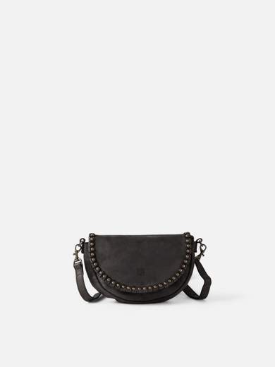 Borsa fatta di pelle di pelle lavata. Tacche decorative sulla patta. Cinghia regolabile. Tasca interna. Fodera di cotone.