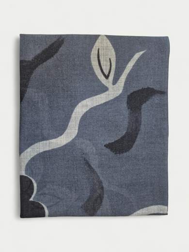Sciarpa dipinta a mano, motivo floreale sulle sfumature dei grigi scuri, in lana melange.