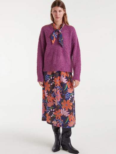 Gonna midi in crêpe leggera con stampa Tigerlily. Vita media con doppio elastico.