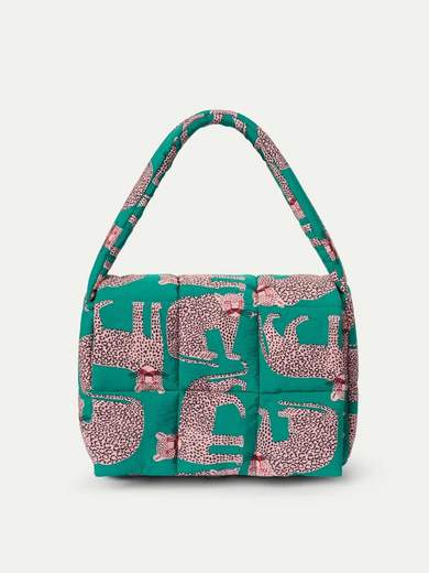Borsa a mano leggera in crêpe con stampa Onca. Manico corto.