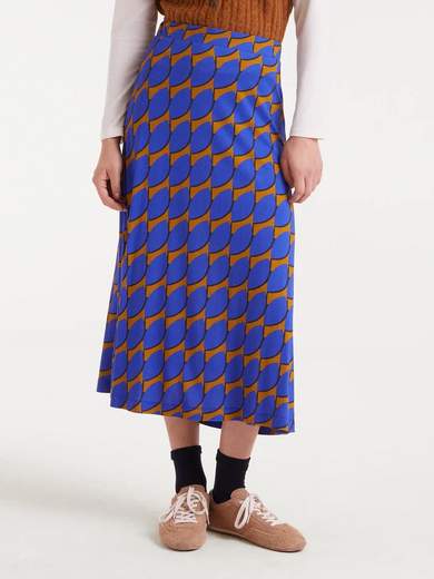 Gonna midi Skouros con stampa piccola. Tessuto in jersey di viscosa. Vita alta con elastico.