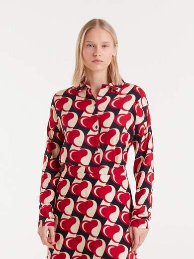 Camicia in twill di viscosa con stampa Heart Attack. Collo a revers e maniche lunghe. Chiusura frontale con bottoni. Spalle leggermente scese.