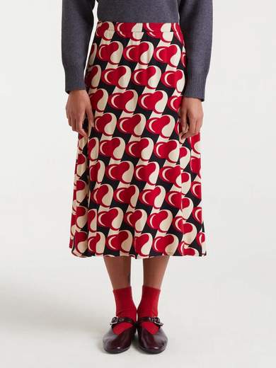 Gonna midi in twill di viscosa con stampa Heart Attack. Vita alta, vita fissa e cerniera laterale invisibile.
