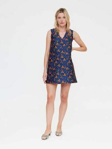 Abito fantasia corto svasato, senza maniche con scollo a V