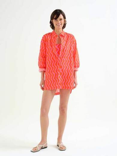 Camicia larga e lunga in cotone fantasia, con manica lunga e colletto