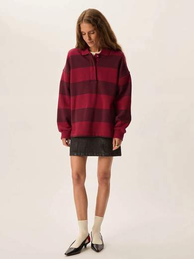 Juliana rivisita l'iconica maglia da rugby in una versione casual. Realizzata in morbido cotone con un bottone dorato sullo scollo per un tocco femminile, questa maglia da college può essere indossata con una gonna o infilata nei jeans a vita alta.