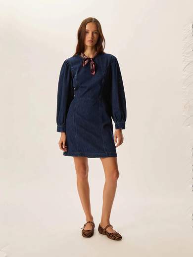 L'abito in denim Lais crea un look chic in questa stagione. In un'atmosfera boho in stile western con denim non trattato, cuciture accattivanti e maniche strutturate, questo capo ultra femminile può essere indossato con stivali a punta per un look da cowgirl.