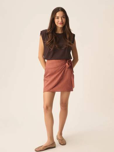 Gonna con vita annodata, la gonna dritta Talami coltiva un look chic ed estivo con le sue strisce colorate. A vita alta ben stretta dietro per una silhouette sublimata, questo capo leggero è facile da abbinare a un top o alla camicia abbinata che ti accompagnerà in città o in vacanza.