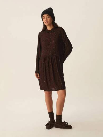 Realizzato in viscosa leggera e fluida con un motivo dalmata stilizzato, l'abito a maniche lunghe Valencia vanta una vestibilità ampia per un look city-chic fluido.