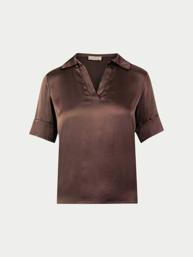 Blusa scollo a V con colletto e manica corta.