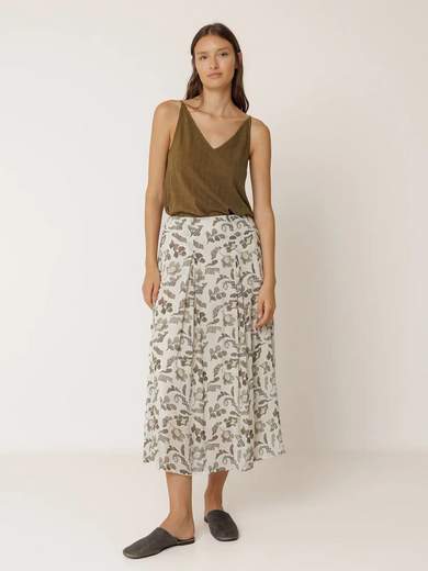 Questa gonna midi in viscosa è il pezzo perfetto per un look comodo e casual. Ha una chiusura nascosta con la cerniera in vita e arriccie che conferiscono alla gonna un aspetto fluido. Una gonna versatile che rispetta il pianeta!