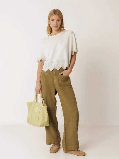 Questi pantaloni a vita alta sono realizzati al 100% in lino ed è un pezzo comodo e versatile, perfetto per look leggeri.