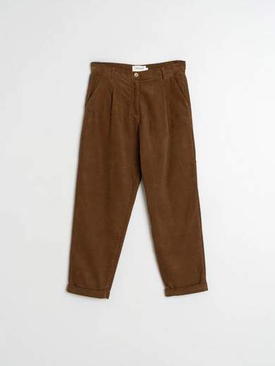 pantaloni in velluto a coste sono un capo essenziale del guardaroba. Questa stagione, sono disponibili in un taglio a carota, con gamba ampia e orlo stretto risvoltato.