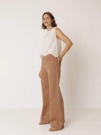 Camicia senza maniche con stampa floreale in stile francobollo su tessuto di cotone dobby. Dettagli ricamati con ritagli all'orlo. Un capo dall'aria romantica, facile da abbinare a tutti i tuoi look.