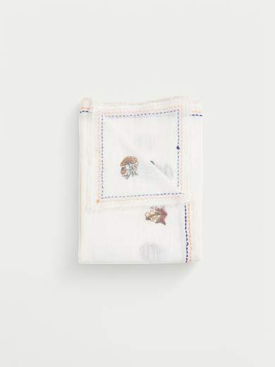 • Sciarpa rettangolare con dettagli ricamati multicolor e finitura sfrangiata.