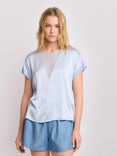 Blusa della capsule Pure Verve caratterizzata da un raffinato gioco di trasparenze.