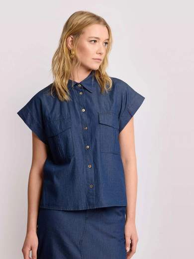Modello a maniche corte con colletto classico e due tasche frontali con patta.