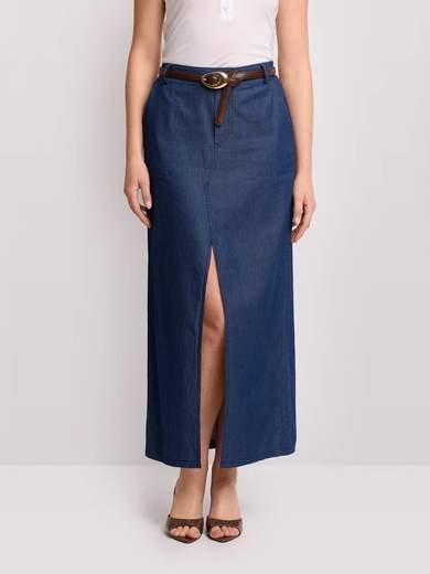 Vita alta definita da passanti sottili e cintura con fibbia dorata a contrasto.