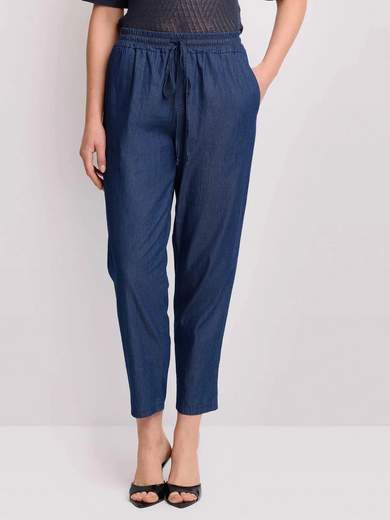 Taglio carrot fit con gamba che si restringe delicatamente verso il fondo e tasche laterali, per un design funzionale e contemporaneo.