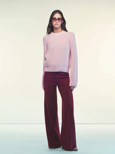 PANTALONI PALAZZO IN PUNTO MILANO CON TAGLI CENTRO GAMBA DAVANTI E DIETRO E FONDO REGOLABILE A TAGLIO VIVO. CHIUSURA CON ZIP FRONTALE E CONTROBOTTONE. VESTIBILITÀ REGULAR.