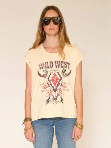 Lo spirito del selvaggio west è immediatamente evidente attraverso una forte immagine: una testa di bufalo con grafiche etniche, accompagnata dall'iscrizione "Wild West". La T-shirt ha un aspetto grezzo e solare, pensata per dare carattere alla silhouette. Facile da indossare quotidianamente, porta un tocco di fuga e autenticità a un look semplice.