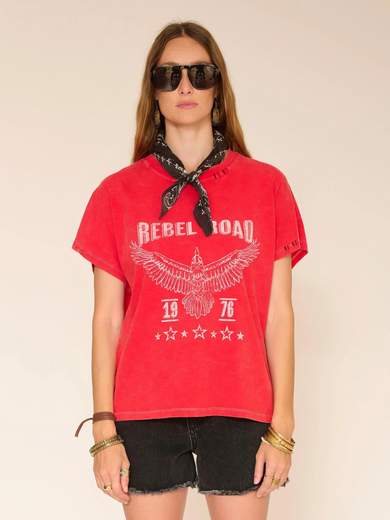 La maglietta Togali afferma un aspetto presunto rock e vintage. La sua stampa in stile biker, ispirata all'iconografia americana, dona carattere pur restando facile da indossare. Realizzato in cotone morbido con una sensazione leggermente sbiadita, offre un aspetto autentico e una silhouette naturalmente fresca. Il suo taglio dritto e confortevole lo rende un essenziale di tutti i giorni, da abbinare al denim o a un capo più femminile per giocare con i contrasti.