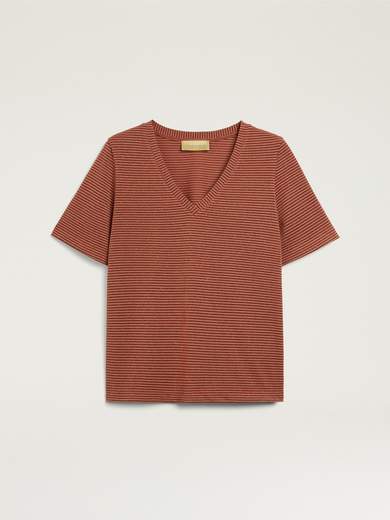 T-shirt scollo a V regolare con manica corta in jersey lurex a righe.