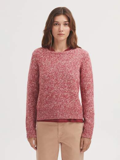 Maglione in misto di lana e cotone sostenibile in filo ritorto. Dettaglio collo quadrato, manica lunga e finitura a costine.