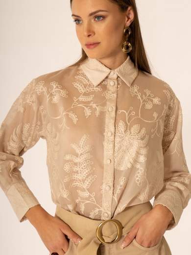 Camicia con ricamo foglie.