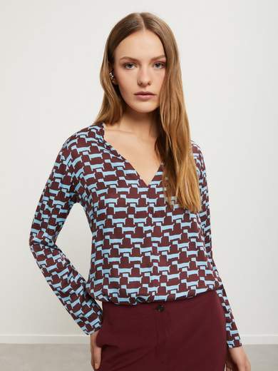Blusa in pura viscosa stampata con scollo a V.