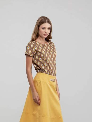 Camicia fantasia, senza collo con piccola manichina corta