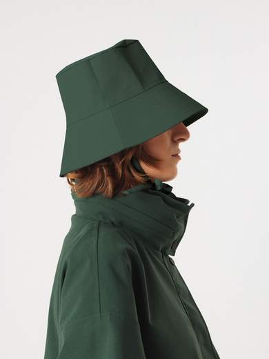 Cappello in tessuto. Tesa larga e logo in silicone. Impermeabile.