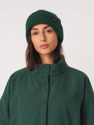 Cappello semplice, lavorato a maglia in cotone biologico. Toppa decorativa su un lato.
