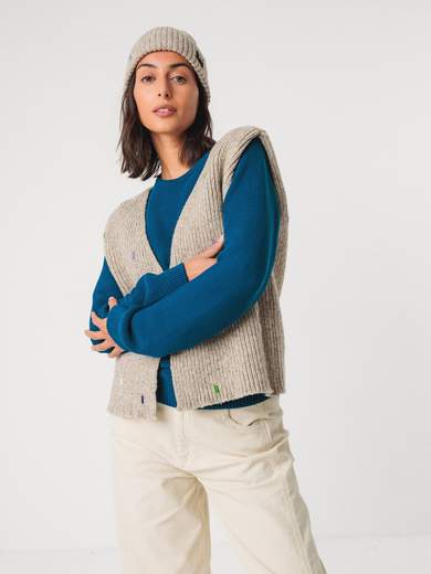 Giacca in lana merino. Corta e senza maniche.